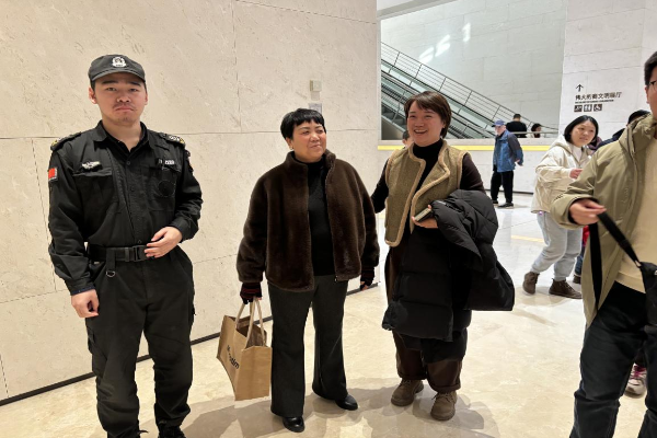 2月2日,一名殘疾游客在參觀殷墟博物館時遇到困難,行動不便。特保隊員陳濤見狀,主動上前詢問是否需要幫助。在得知游客希望繼續(xù)參觀但行動受限后,陳濤全程攙扶游客,耐心講解展覽內(nèi)容,確保游客能夠安全、舒適地游覽。游客對特保的貼心服務贊不絕口,表示這是他們此行中最溫馨的記憶。