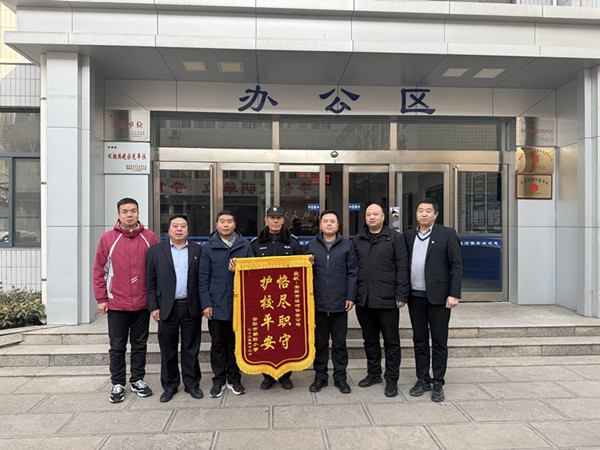 2025年12月24日上午,安陽市朝陽小學(xué)校長(zhǎng)李獻(xiàn)紅、總務(wù)處主任路天順一行專程到訪公司,代表全校師生贈(zèng)送錦旗,對(duì)人防一大隊(duì)派駐該校的保安隊(duì)員劉河林十幾年如一日的辛勤付出致以誠(chéng)摯謝意。