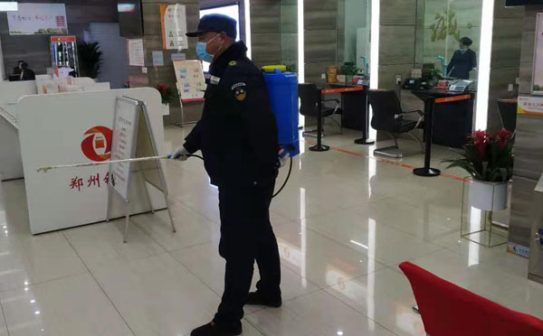 近期,多地新冠肺炎疫情出現(xiàn)多點(diǎn)、零星、散發(fā)態(tài)勢(shì),根據(jù)上級(jí)要求,人防一大隊(duì)駐鄭州銀行保安班在中隊(duì)長(zhǎng)司留志帶領(lǐng)下,積極響應(yīng)銀行防疫工作要求,做好疫情防控工作。隊(duì)員每天做好個(gè)人衛(wèi)生,佩戴口罩上崗。他們認(rèn)真測(cè)量進(jìn)入銀行辦理業(yè)務(wù)的每位客戶體溫,提醒客戶佩戴口罩、登記信息。銀行下班后,隊(duì)員對(duì)銀行營(yíng)業(yè)廳對(duì)外服務(wù)窗口進(jìn)行全面消毒,為到銀行辦業(yè)務(wù)的客戶創(chuàng)造了一個(gè)安全的環(huán)境,受到客戶單位主要領(lǐng)導(dǎo)的夸獎(jiǎng)。