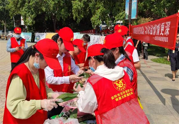 在文藝節(jié)目表演當(dāng)中,還穿插了猜謎語(yǔ)、端午節(jié)知識(shí)搶答等互動(dòng)環(huán)節(jié),活躍了現(xiàn)場(chǎng)氣氛。在現(xiàn)場(chǎng)的南北兩側(cè)由公司組織的19家單位進(jìn)行的包粽子獻(xiàn)愛(ài)心活動(dòng)將本次活動(dòng)推向了高潮,志愿者們用嫻熟的技能,把粽子迅速包好,并分裝,分發(fā)了給了過(guò)往群眾、演職人員和觀眾,大家都沉浸在節(jié)日的喜悅之中。包完粽子,北關(guān)區(qū)還開(kāi)展了志愿服務(wù)關(guān)愛(ài)行動(dòng),將包好的粽子送給特殊兒童、空巢老人、老黨員和辛勤勞作的環(huán)衛(wèi)工人、園林工人,讓他們也感受到節(jié)日的溫暖。