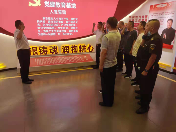 走進(jìn)大廳,首先映入大家眼前的是“強(qiáng)根鑄魂,潤(rùn)物耕心”幾個(gè)大字,體現(xiàn)了華潤(rùn)人強(qiáng)烈的服務(wù)理念,在一副副鮮明特色的紅色教育展板前了解到華潤(rùn)燃?xì)獍碴?yáng)分公司在中國(guó)共產(chǎn)黨的領(lǐng)導(dǎo)下各個(gè)階段發(fā)展歷程和強(qiáng)烈的潤(rùn)物無(wú)聲的服務(wù)客戶理念。參觀完畢,大家在支部書記陳志軍帶領(lǐng)下,舉起右拳,莊嚴(yán)重溫入黨誓詞。
