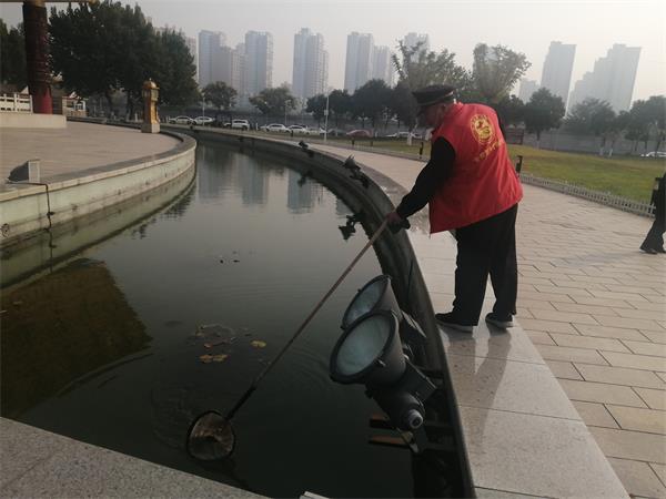 活動(dòng)中,參加人員身著志愿者服裝,個(gè)個(gè)精神飽滿,情緒高漲。大家分工明確,有的抹椅子,有的清理水池中的漂浮物,有的清理地面上的垃圾,不怕臟,不怕累,不叫苦,清理環(huán)境衛(wèi)生,助推文明城市創(chuàng)建。