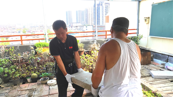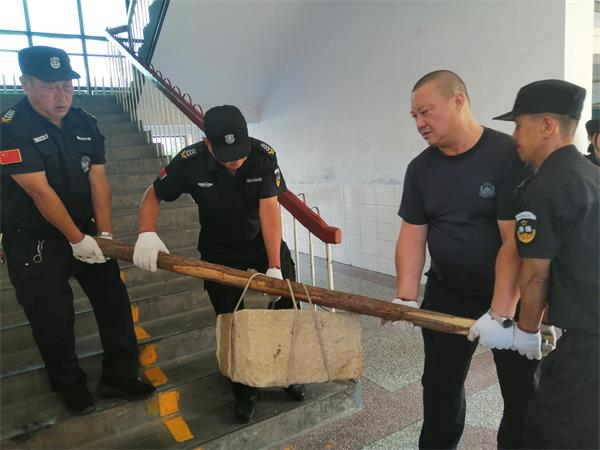 由于該校教學樓上遺留有一定數(shù)量的花池、石塊、石槽、建筑塊、水泥塊、地板、磚等物,校方排查存在安全隱患,需要把樓頂?shù)臇|西清運下來。按照支部組織謀劃安排,當日上午8點半,在黨員、中隊長劉宇,預(yù)備黨員、副中隊長楊承濤帶領(lǐng)下,同志們齊心協(xié)力、相互配合,采取接力方式向下轉(zhuǎn)運。有的一塊石頭有二三百斤,他們就用繩子捆住向下抬,一個個累得汗流浹背,但沒有一個人叫苦叫累,張運洲邊干邊反復提醒大家注意安全。他們利用一上午時間,把大部分體積較大的石塊、石板、地磚等物安全清理下樓,又把清運堆積在樓道的東西,搬運到200米外的樓后隱蔽處。