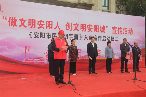 儀式上,公司志愿者李俊峰代表北關(guān)區(qū)志愿者進(jìn)行“爭(zhēng)做文明市民”宣誓,市衛(wèi)健委陳美紅代表文明單位表態(tài)發(fā)言,薛崇林、張玲、李志弘、車(chē)俊朝、路錄平、王洪忠為市、區(qū)各單位代表發(fā)放《安陽(yáng)市民文明手冊(cè)》。