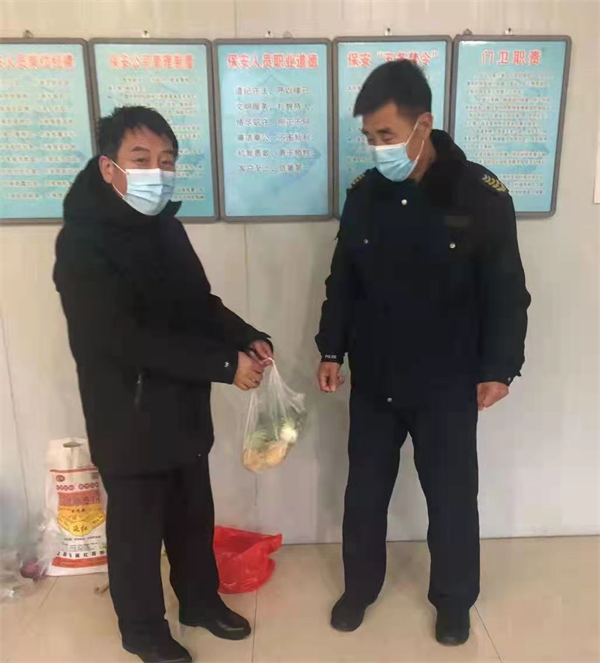 1月10日,因?yàn)橐咔榉揽兀珓?wù)倉的兩名隊(duì)員被隔離在崗位上。中隊(duì)長(zhǎng)程永明得知情況后很是擔(dān)心隊(duì)員們的生活,害怕隊(duì)員們?nèi)甜嚢ゐI,于是他連夜從家中拿些生活用品送到公務(wù)倉崗點(diǎn)隊(duì)員手中,囑咐他們安心工作。隨后的日子里程永明定時(shí)把生活用品送到崗點(diǎn),隊(duì)員們看到領(lǐng)導(dǎo)的關(guān)心,非常感動(dòng),他們表示讓分公司領(lǐng)導(dǎo)放心,一定保護(hù)好客戶的財(cái)產(chǎn)安全。