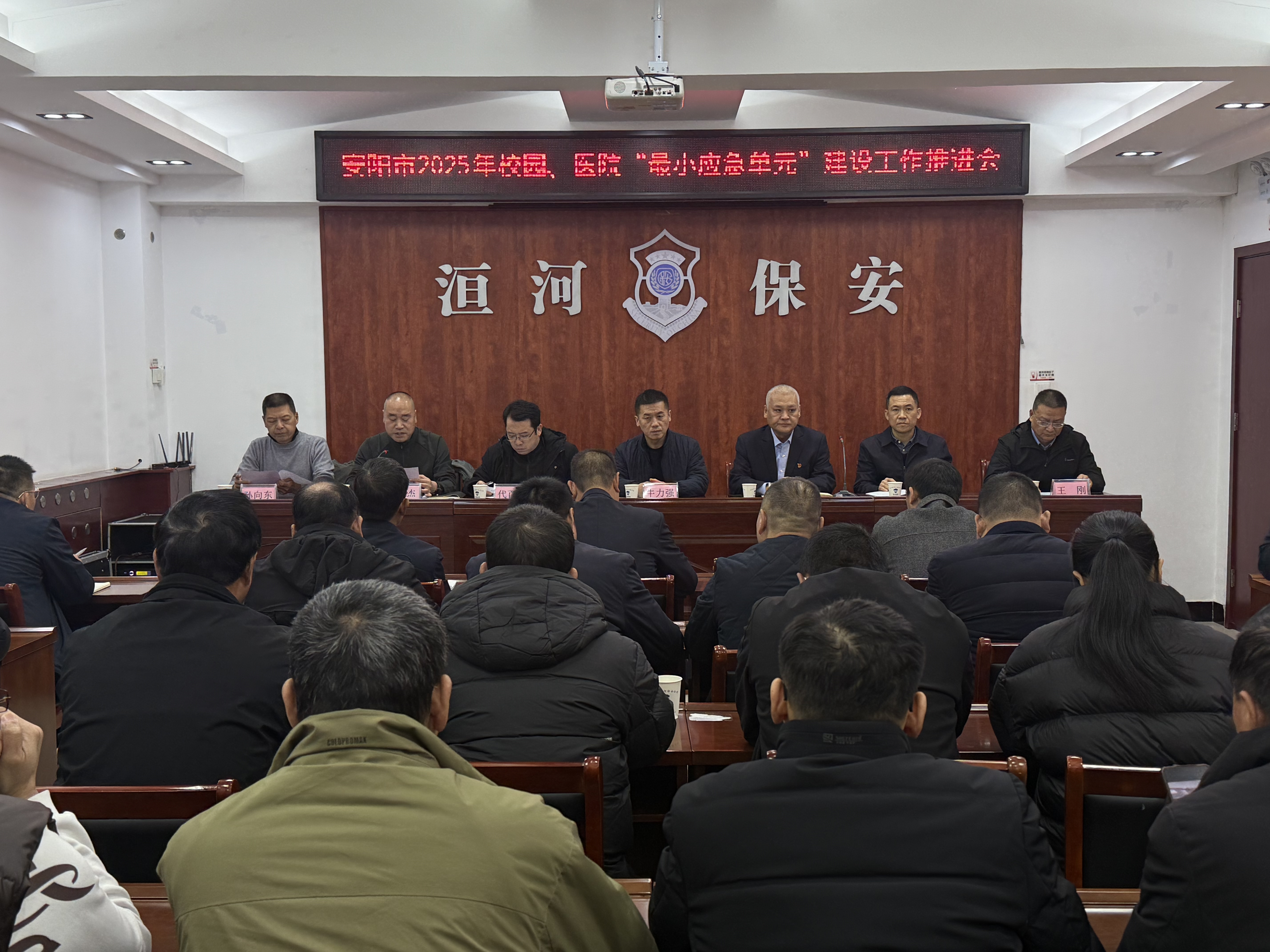11月27日上午,安陽(yáng)市2025年校園、醫(yī)院“***小應(yīng)急單元” 建設(shè)工作推進(jìn)會(huì)在公司南二樓會(huì)議室召開。市公安局治安管理支隊(duì)副支隊(duì)長(zhǎng)牛力強(qiáng)出席會(huì)議并講話,市教育局、市衛(wèi)健委相關(guān)領(lǐng)導(dǎo),市公安局治安管理支隊(duì)校園及醫(yī)院安保分管負(fù)責(zé)人,市保安協(xié)會(huì)及全市30家涉校涉醫(yī)保安公司負(fù)責(zé)人,公司黨委副書記、總經(jīng)理魏東,黨委委員、副總經(jīng)理孫國(guó)濤參加會(huì)議。魏東代表公司作表態(tài)發(fā)言。
