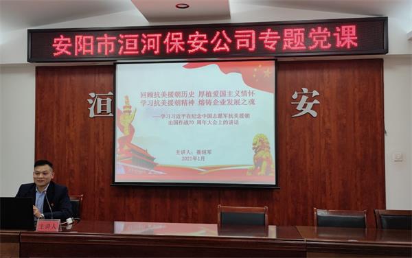 為了弘揚(yáng)偉大抗美援朝精神,銘記歷史、致敬英雄,引導(dǎo)廣大黨員干部傳承革命精神,牢記初心使命,勇于擔(dān)當(dāng)作為。由于當(dāng)前處于疫情防控期,2021年1月12日下午,在公司南二樓會(huì)議室,黨委錄制了專題黨課視頻,黨課以《回顧抗美援朝歷史 厚植愛國主義情懷 學(xué)習(xí)抗美援朝精神 熔鑄企業(yè)發(fā)展之魂》為主題,由第三黨支部書記聶紹***同志講授,要求各黨支部充分利用微信工作群、學(xué)習(xí)強(qiáng)國云盤等網(wǎng)絡(luò)平臺(tái),通過集中學(xué)習(xí)或自主學(xué)習(xí)形式動(dòng)員廣大黨員收看,并做好黨課筆記。