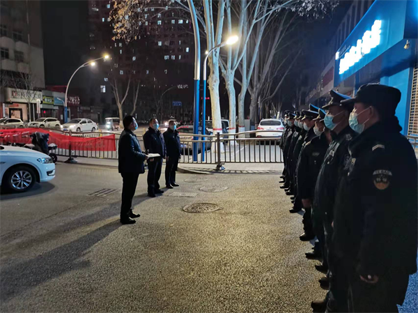 5點50分,人防分公司領(lǐng)導李向陽、馮文峰來到科技大樓執(zhí)勤點,人防四大大隊長陳志***帶隊已經(jīng)到崗,他們著裝整齊,正在待命與豆腐營街道辦事處接洽。人防一大隊大隊長付春濤帶隊在安陽橋頭執(zhí)勤點,人防二大隊大隊長王向煜帶隊在勝利路執(zhí)勤點,人防五大隊大隊長韓華勇帶隊在紅旗路執(zhí)勤點,他們設(shè)路障,拉警戒帶,對過往車輛、人員進行勸返。200余名人防隊員一切行動聽指揮,針對不理解的群眾,他們耐心勸導,需要繞行的車輛,他們詳細講解繞行路線。刺骨寒風將手指凍得生疼,他們搓搓雙手繼續(xù)為過往群眾講解,長時間站立,隊員們雙腿凍僵了,他們就原地踮踮腳繼續(xù)堅守崗位。******下來,他們執(zhí)行的勤務區(qū)域治安良好,秩序井然,沒有發(fā)生一起安全事故,充分展現(xiàn)了洹河保安優(yōu)良作風和良好形象。