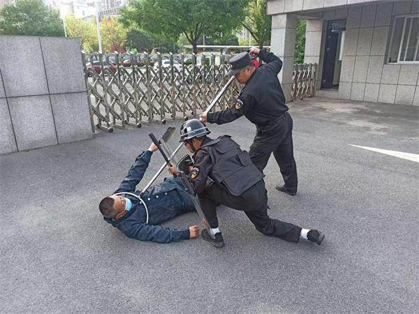 為做好這次防恐預(yù)案演練,人防一大隊領(lǐng)導(dǎo)和郵局保安班隊員一起,對預(yù)案方案進(jìn)行了細(xì)化,從場景設(shè)置到人員安排,從道具準(zhǔn)備到過程節(jié)點把握都做了詳細(xì)安排和部署。4月13號上午8點,郵局保安班一場外來人員到郵局機(jī)關(guān)大院鬧事防恐演練開始,保安員正在值班中間,從外面進(jìn)來兩名陌生人員想進(jìn)入大院,其中一名保安隊員上前詢問兩名陌生人員辦什么事,兩名陌生人員突然從身上掏出兇器,就要強(qiáng)行闖卡。保安見情況不妙,馬上用對講機(jī)呼喊隊員帶防爆器材過來,這期間,這兩名陌生人員拿著兇器在門口鬧事,保安隊員又及時打電話通知保衛(wèi)科,讓各科室把門鎖好以防進(jìn)入樓層。兩名保安帶著防爆叉以及盾牌阻止陌生人員違法行為,經(jīng)過一番搏斗,終于制服了兩名陌生人員,然后向公安機(jī)構(gòu)報警。