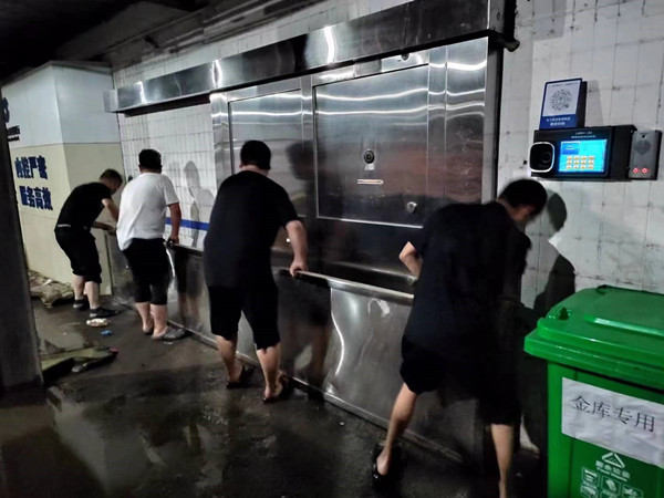當(dāng)晚,他們對(duì)地下室以及金庫門前實(shí)施防汛措施,隨著水位逐漸升高,隊(duì)員們各自就位提高警惕,按照預(yù)案要求,全力以赴保障金庫和內(nèi)部安全。