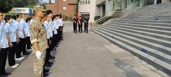 8時(shí)30分,升旗儀式正式開始。升旗手就位,隨著雄壯的國(guó)歌響起,全體員工向國(guó)旗行注目禮,五星紅旗在國(guó)歌聲中冉冉升起、迎風(fēng)飄揚(yáng)。為做好這次升旗儀式,守押五大隊(duì)大隊(duì)長(zhǎng)牛曉波認(rèn)真挑選升旗手,對(duì)選定人員進(jìn)行了針對(duì)性訓(xùn)練。本次升旗儀式,不僅體現(xiàn)了守押五大隊(duì)與貴行的團(tuán)結(jié)協(xié)作能力,更是展現(xiàn)了守押五大隊(duì)昂揚(yáng)向上的精神風(fēng)貌。自本月起,每月一號(hào)為升旗日。