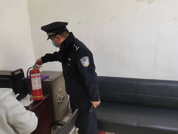 10月10日,殷商分局民警到守押五大隊(duì)檢查槍彈、消防安全工作,大隊(duì)長馮文峰陪同檢查。