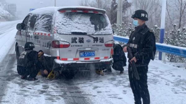 早上點(diǎn)名前,大隊(duì)長(zhǎng)楊中朝就通過(guò)大隊(duì)微信工作群向各行中隊(duì)傳達(dá)了指示。一是要根據(jù)路況,精準(zhǔn)研判,行車中減速慢行,不超車,車上備足兩套防滑鏈,對(duì)于上下坡路段積雪嚴(yán)重的要及時(shí)進(jìn)行安裝防滑鏈,確認(rèn)安全后再行駛。二是針對(duì)銀行網(wǎng)點(diǎn)的路況要及時(shí)和銀行網(wǎng)點(diǎn)進(jìn)行溝通,車輛行駛不到的要及時(shí)進(jìn)行上報(bào),通過(guò)與銀行網(wǎng)點(diǎn)聯(lián)系,做到延遲送達(dá)或者暫不運(yùn)送,謹(jǐn)記安全******。三是要根據(jù)上午運(yùn)送的線路路況,對(duì)下午的出車接款時(shí)間做出調(diào)整,通過(guò)與銀行網(wǎng)點(diǎn)的溝通聯(lián)系,適時(shí)提前下午出車的接款時(shí)間,力爭(zhēng)在晚上溫度下降前安全返回。
