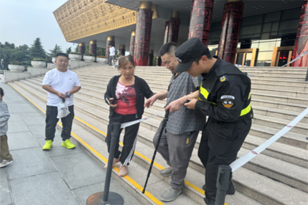節(jié)日期間,特保大隊(duì)實(shí)行24小時(shí)輪班值守,全體隊(duì)員全情投入安保工作。一是嚴(yán)把入口關(guān)。安檢隊(duì)員嚴(yán)守各場(chǎng)館入口安檢關(guān)口,細(xì)致排查易燃易爆、管制刀具等違禁物品。僅殷墟博物館、中國文字博物館、漢字公園3處,日均完成超4萬余人次安檢,精準(zhǔn)攔截多起違禁品,筑牢“危險(xiǎn)物品不入園”的堅(jiān)實(shí)防線。二是強(qiáng)化內(nèi)部巡邏。館內(nèi)隊(duì)員加密巡邏頻次,既重點(diǎn)盯防文物展柜等安全要害,又聚焦客流易聚集區(qū)域。實(shí)時(shí)疏導(dǎo)擁擠人群,有效防范各類安全風(fēng)險(xiǎn)。三是維護(hù)現(xiàn)場(chǎng)秩序。游客熱點(diǎn)區(qū)域,隊(duì)員遇人員飽和時(shí),及時(shí)引導(dǎo)游客分批次有序游覽,保障良好秩序。四是提供暖心幫助。特保隊(duì)員專注引導(dǎo)行人安全通行。遇到老年游客或攜帶重物的游客,主動(dòng)上前攙扶、協(xié)助搬運(yùn)行李,以貼心舉措傳遞安保溫度。 好人好事不斷,傳遞服務(wù)溫情。