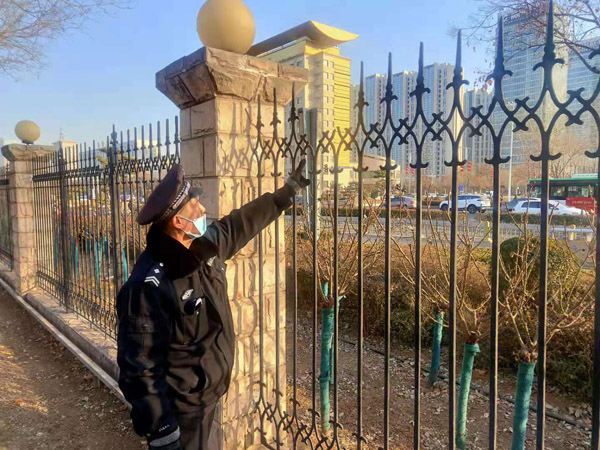 牛年春節(jié)臨近,為度過一個安寧祥和的新春佳節(jié),人防二大隊(duì)提前安排布局,做了周密的準(zhǔn)備工作。近一周來,該大隊(duì)主管隊(duì)伍管理和崗點(diǎn)建設(shè)的干部,深入基層崗點(diǎn)查崗查哨,了解隊(duì)伍思想動態(tài),就進(jìn)行節(jié)前安全隱患大排查提出具體要求,叮囑隊(duì)員站在講政治的高度,堅(jiān)守崗位,認(rèn)真履行職責(zé),把各項(xiàng)安全措施落到實(shí)處。守土有責(zé),守土盡責(zé),嚴(yán)格執(zhí)行門衛(wèi)管理制度,搞好消毒滅殺,講究個人衛(wèi)生,切實(shí)做好疫情防控工作,確保不發(fā)生任何安全責(zé)任事故和疫情防控失職行為。圖為隊(duì)員在進(jìn)行安全隱患排查。