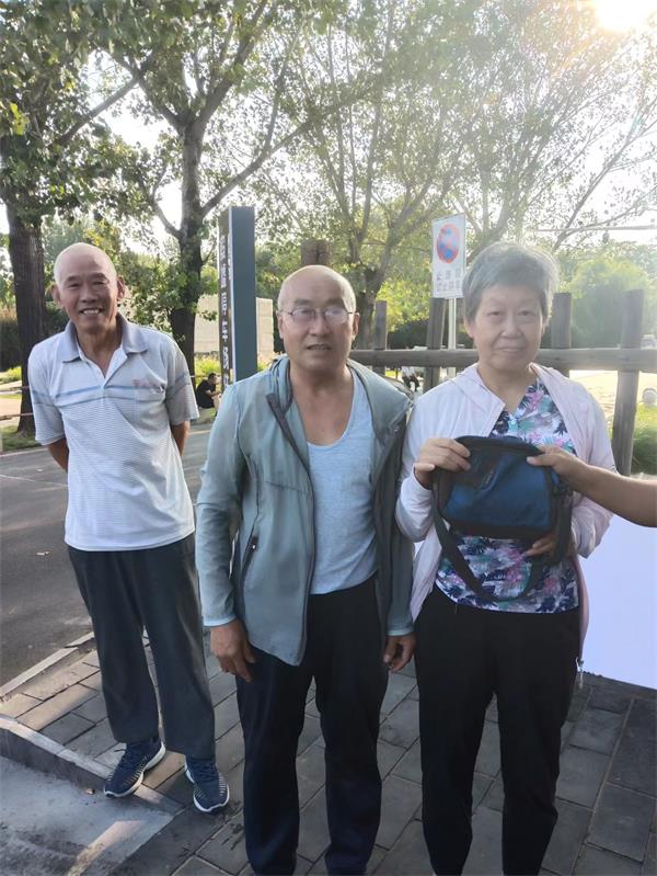 9月8日下午16:50分許,該大隊六中隊保安員周來娣、朱志芳在殷墟路和廣場南路路口執(zhí)勤時,有兩男一女三位老年人向她們走來,周來娣迎上前禮貌地問:“請問老同志,有什么事需要幫助嗎?”三人說:“在廣場南路發(fā)現(xiàn)路邊有一個包,怕失主找包著急,請你們幫忙尋找失主?!敝軄礞访φf:“先替失主感謝你們拾金不昧的精神?!苯又诒娙说囊娮C下,隊員查看后,發(fā)現(xiàn)包里有身份證、手機、錢包、銀行卡等物。于是,她們用電喇叭錄好招領啟示,在警亭滾動播放。不一會兒,先后有三個人前來認領。慎重起見,班長郭國峰讓來人說出包的特征和包內物品,但都對不上號。后來有一位約70歲的老翁領一小女孩前來認領,經過確認,確定是真正的失主。這時,撿包者正好路過警亭,周來娣將撿包者告知失主。失主很感動,趕忙買來飲品表示感謝。