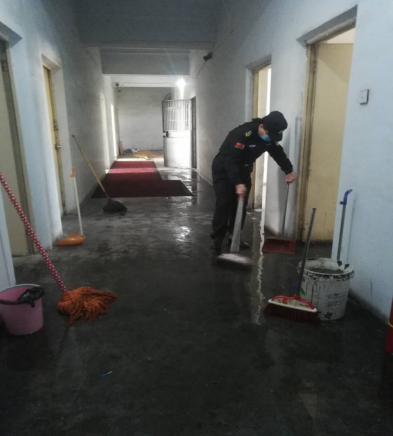 經(jīng)過3個(gè)多小時(shí)的奮戰(zhàn),黃相武、常松平和客戶單位工作人員終于將4樓倉庫內(nèi)的積水清理完畢。