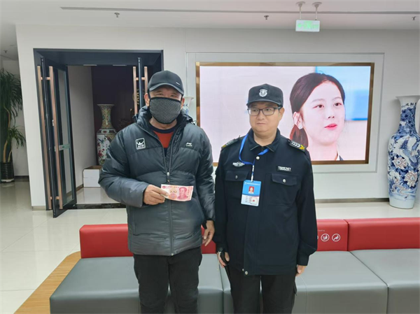 12月19日下午14點25分,失主前來認領。劉志強拾金不昧的行為受到客戶和行領導的高度贊揚。
