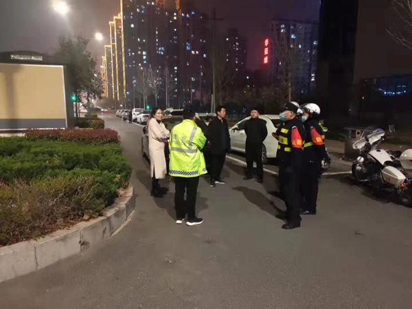 3月14號晚上8點(diǎn)40分左右,人防一大隊(duì)派駐高新區(qū)分局巡防隊(duì)徐強(qiáng)、郝文佺,閆志強(qiáng),孫守偉,宋立等5名隊(duì)員在轄區(qū)巡邏,行至開發(fā)區(qū)佳田未來城小區(qū)西門非機(jī)動車道看到一起交通事故。當(dāng)時(shí),事故雙方情緒激動,在激烈爭吵,還有一名小孩受輕傷。