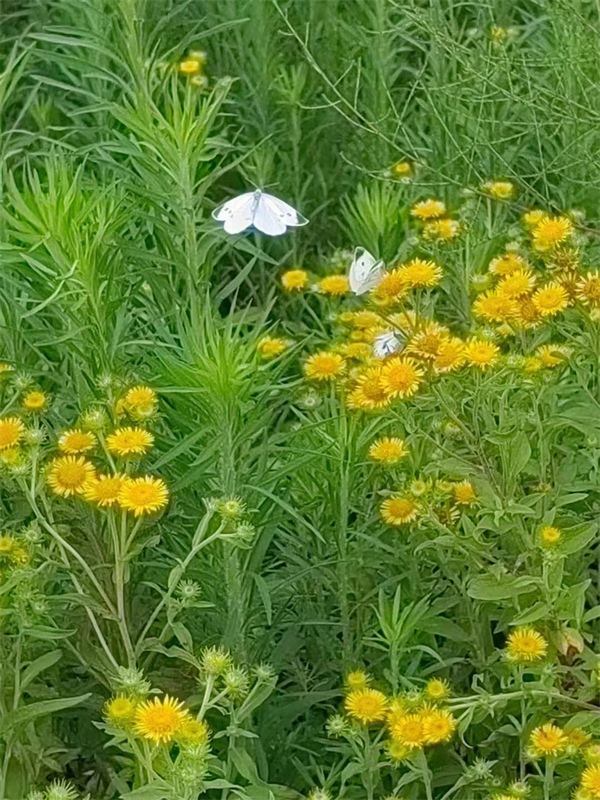 野花隨意,蝶在叢中戲。